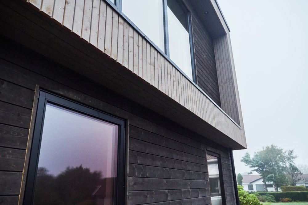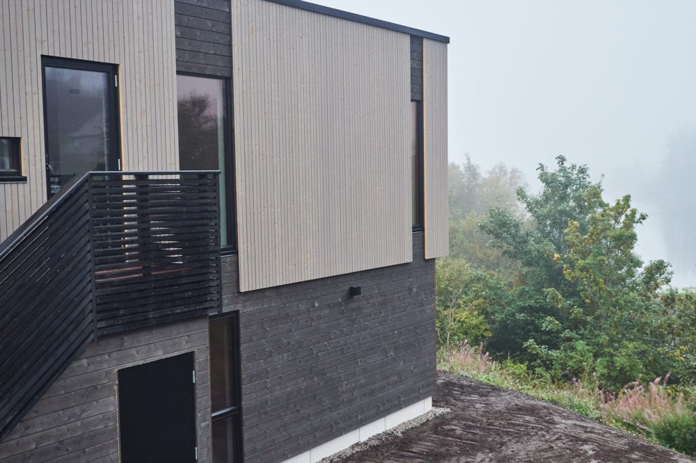 Felles for husene har vært at alle familiene har valgt 2 forskjellige farger og profiler til fasaden. Videoen viser et eksempel på profiler med fargen zink på de loddrette bordene og kul på de vannrette bordene. Valget av og samspillet mellom de ulike profilene og fargene gir fasaden på husene et vakkert og unikt uttrykk som passer perfekt inn i omgivelsene.