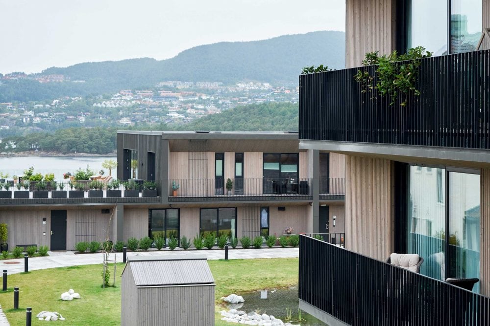 Skjoldnes-prosjektet består av 6 bygninger som ligger helt i vannkanten i nærheten av Bergen.